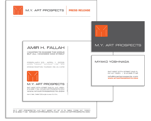 | Client: M.Y. Art Prospects Gallery, New York, NY | Stationary design | Involvement: original concept, design | Click here for //www.myartprospects.com/