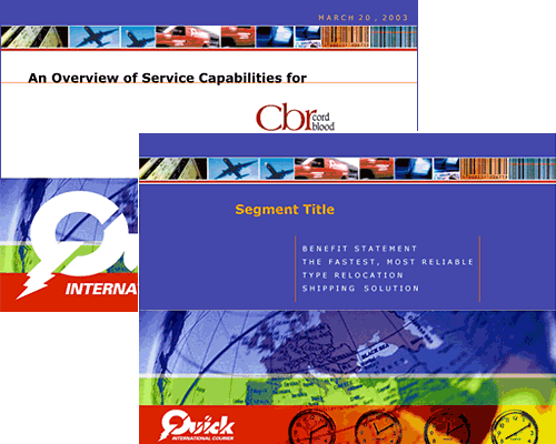 | Client: Quick International Courier, New York, NY | Client PowerPoint presentation | Involvement: design of the template | Click here to download PDF