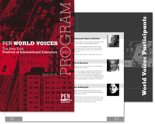 | Client: PEN American Center, New York, NY | Festival Program | Involvement: original concept, photography, layout, mechanicals | Click here to download PDF