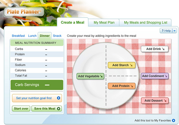 | Client: BMS & Astra Zeneca | Web tools for diabetes help - The Plate Planner | Involvement: original concept, art direction, UX design, wireframes, design, graphics | Click here or on the image to see more