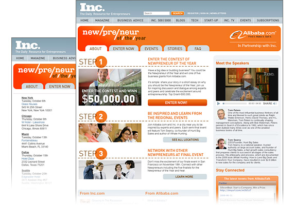 | Client: Inc.com, New York, NY | Newpreneur - Alibaba partnership with Inc. website | Involvement: original concept, art direction, wireframes, design, logo design, graphics