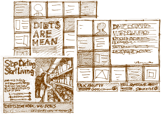 | Client: Weight Watchers, New York, NY | Winter campaign storyboards and sketches | Involvement: concept, art direction and execution | Click here or on the image to see more sketches