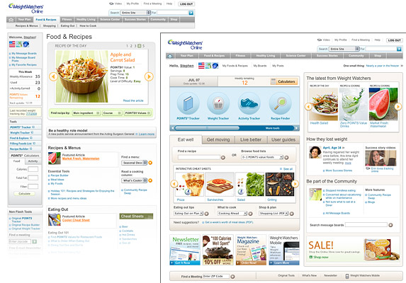 | Client: Weight Watchers, New York, NY | Subscriber site - home and main channel pages | Involvement: original concept, art direction, design | Click here or on the image to see the page