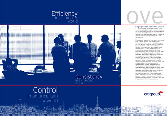 | Client: Citigroup , New york, NY | Global Trade Services brochure | Involvement: original concept, art direction, design, layout, mechanicals