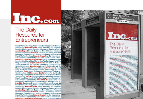 | Client: Inc.com, New York, NY | Telephone booth poster | Involvement: original concept, design, layout, mechanicals