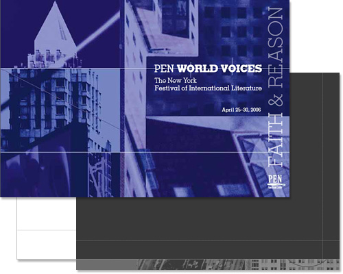 | Client: PEN American Center, New York, NY | Festival Program | Involvement: original concept, photography, layout, mechanicals | Click here to download PDF