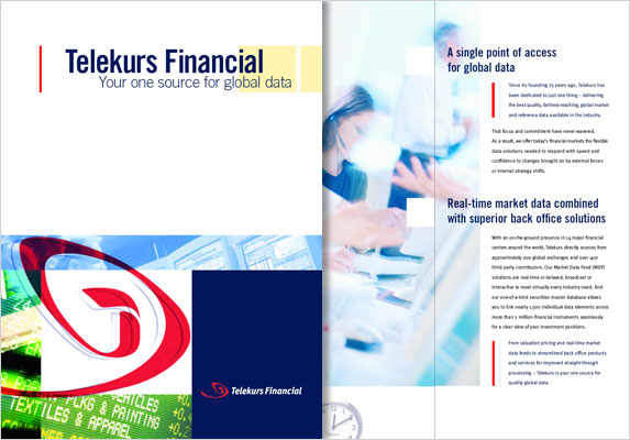 | Client: Telekurs Financial, Stamford, CT | Corporate brochure, folder and sellsheets | Involvement: original concept, layout, mechanicals | Click here to download PDF