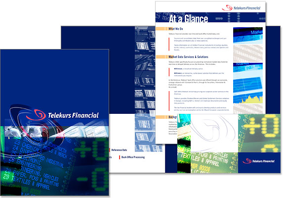 | Client: Telekurs Financial, Stamford, CT | Corporate brochure, folder and sellsheets | Involvement: original concept, layout, mechanicals | Click here to download PDF