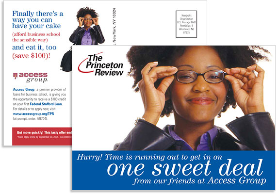 | Client: The Princeton Review , New york, NY | Direct mail - postcards | Involvement: original concept, layout, mechanicals